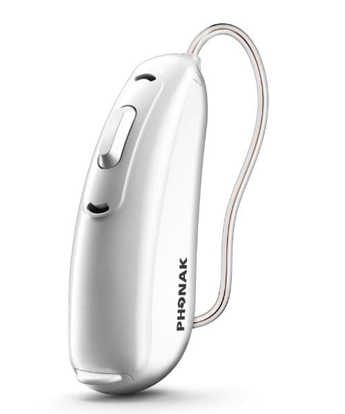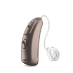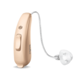 RIC hearing aid has an open-fit design similar to a behind-the-ear style. Instead of a tube, a thin receiver wire goes from the main part of the device over the outer ear and into the ear canal.
